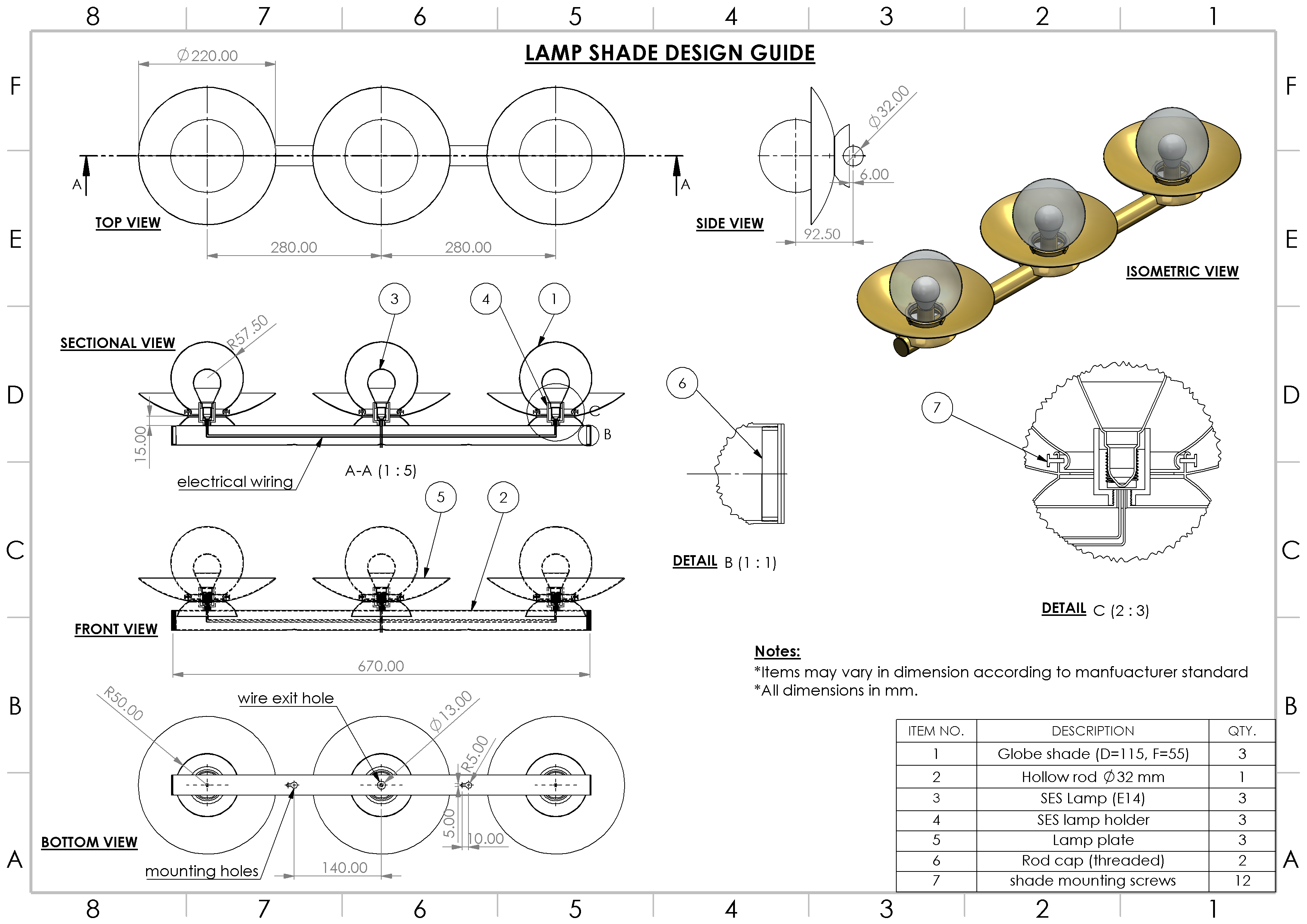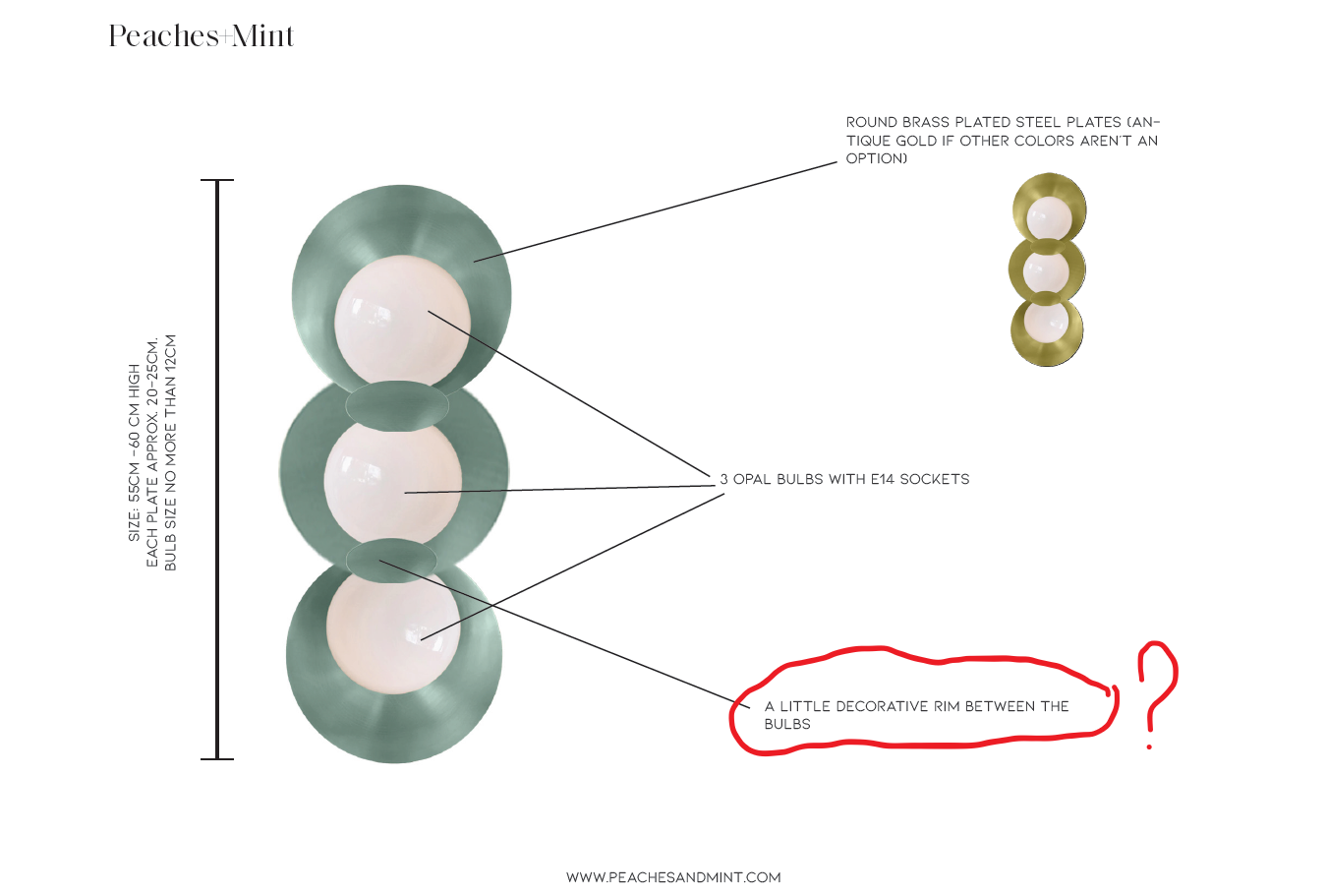 The client had a clear visual direction but only rough sketches and references. The goal was to translate the concept into a manufacturable wall-mounted lamp while keeping the design minimal, symmetrical, and easy to produce. Key unknowns included globe size, mounting approach, wiring exit, and how to assemble the globe/shade using realistic off-the-shelf lighting components.